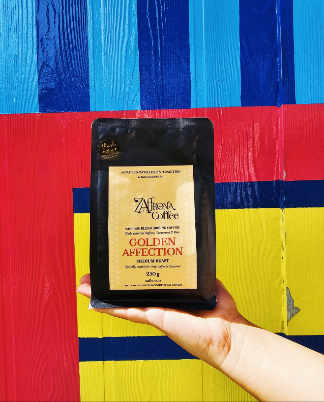 Introducing Golden Affection, a unique coffee blend that combines the rich traditions of Middle Eastern coffee with the warmth and luxury of saffron, cardamom, and rose. This blend offers an exquisite coffee experience that’s perfect for those who appreciate a touch of elegance and spice.